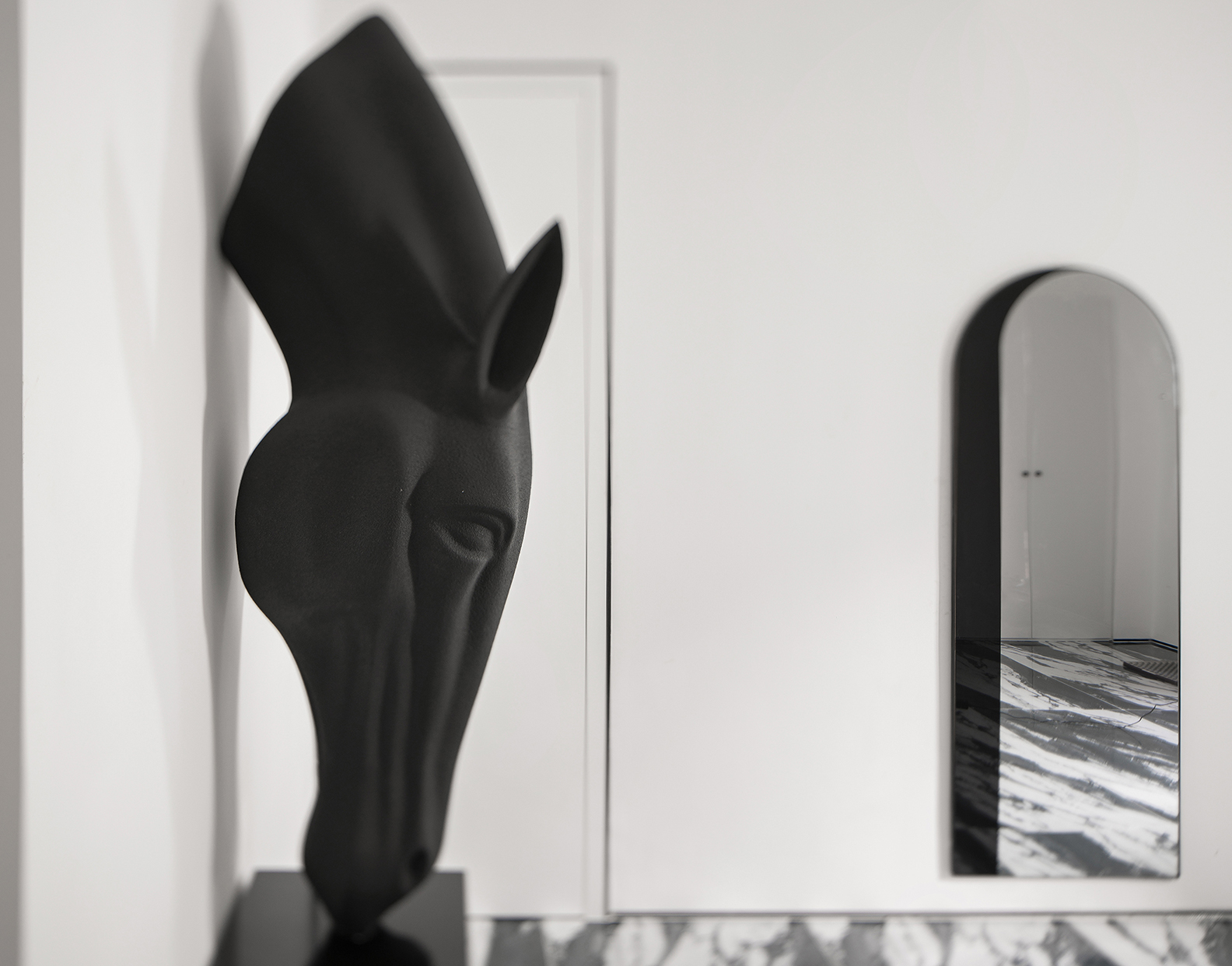 主臥更是黑白分明、干凈有力,簡潔清晰的線條,精致細膩的工藝收口,功能性與實用性兼具,展現出極具想象的視覺效果。布滿鏡子的更衣間不僅提升了空間感,也讓整個空間更加有趣。