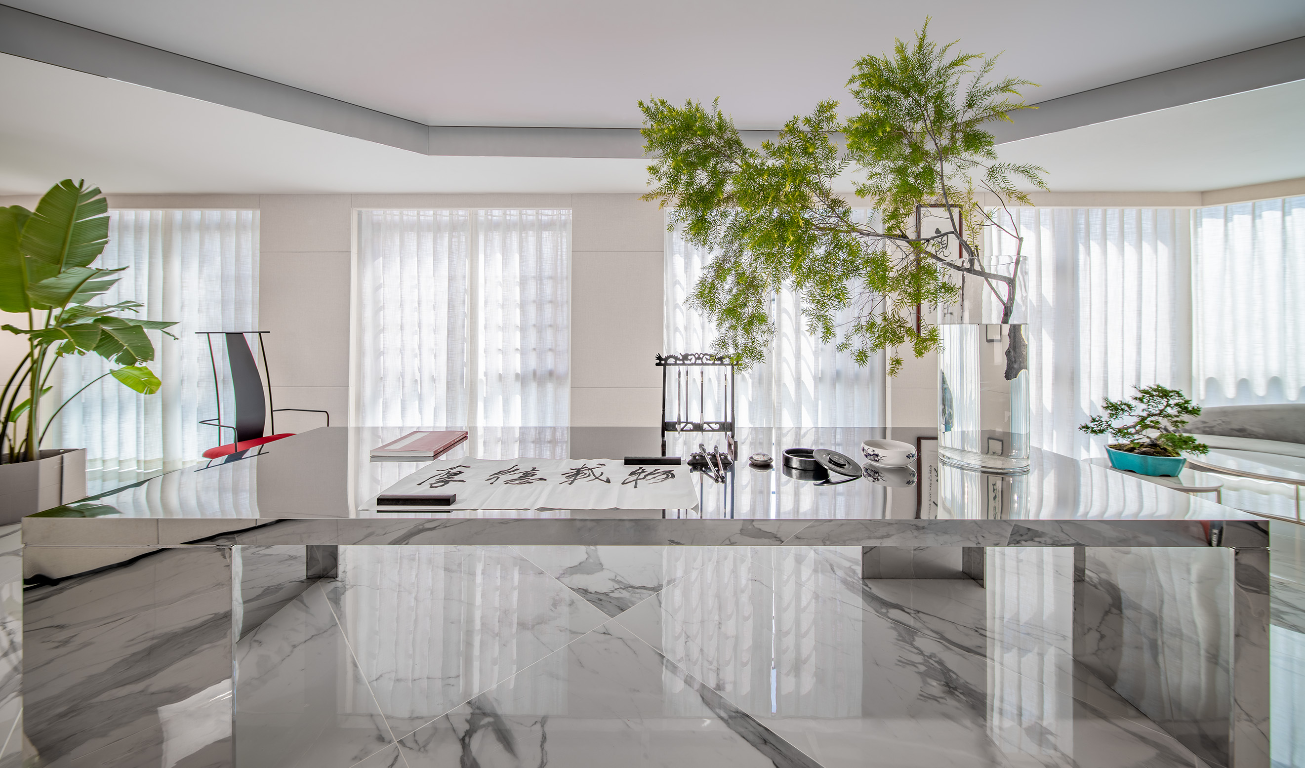 書法室:一抹綠色為書房帶來幾分靜謐。柔和的自然光讓滿室充滿生機(jī)。