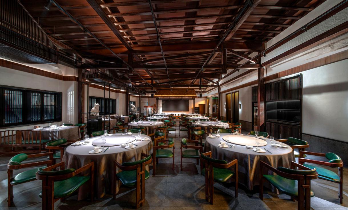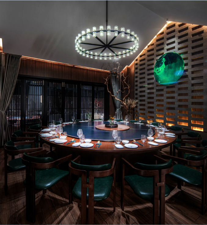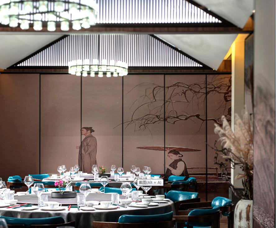 本項目坐落于江南水鄉、百戲之祖“昆曲”發源地——昆山,設計師以水鄉自然風光為背景,以大美昆曲、“昆山三寶”之一的“昆石”為靈感,將江南民居窗格紋樣、灰磚、瓦片等特色元素巧妙融入設計中,在喧囂城市中勾勒出一方靜謐、自然、雅致的餐飲空間。