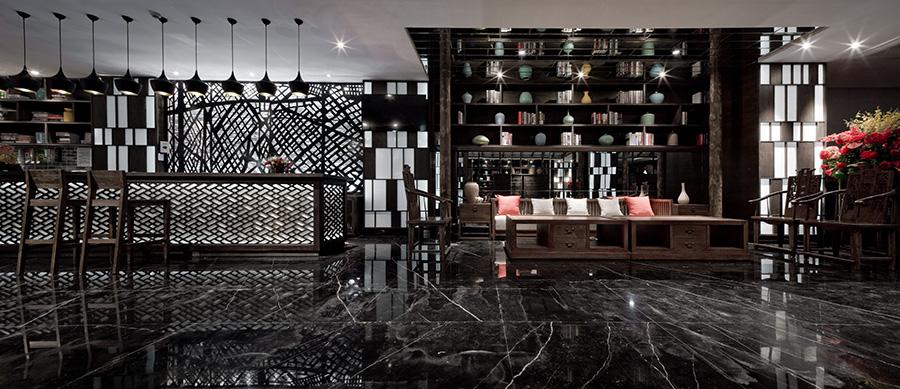 - 主要材料:爵士白大理石,原木做舊實(shí)木,青磚青瓦,黑色花崗巖等