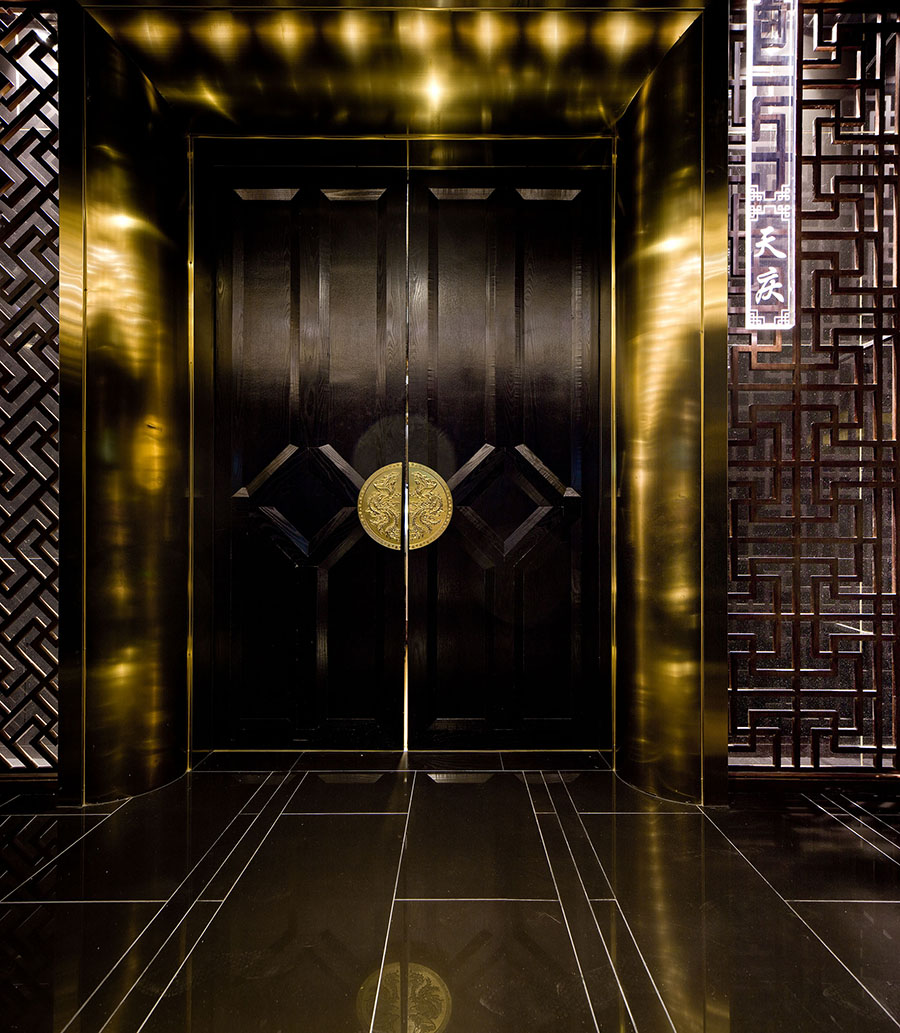 將橫梁用金箔包裹,用于搭配最頂部的金屬簾。