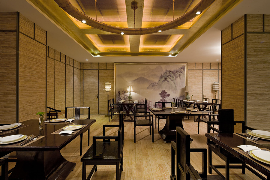 顯得十分端莊、典雅。地面的吧臺與它相呼應。