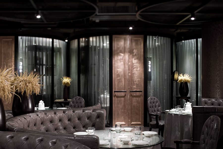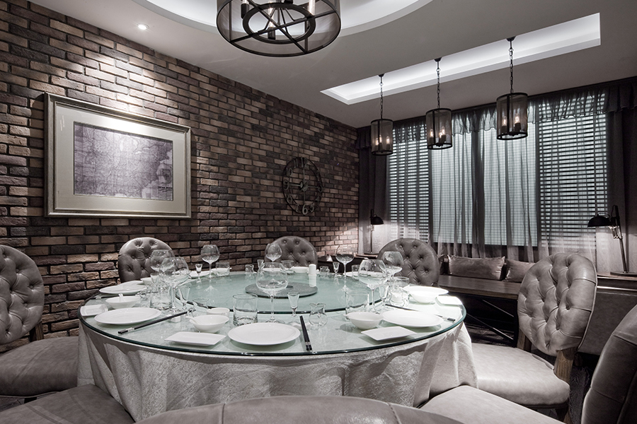 包間沒有復雜的造型,復古條磚搭配鐵藝的燈具,木本色的家具,流露著一種樸質、自然的情感。