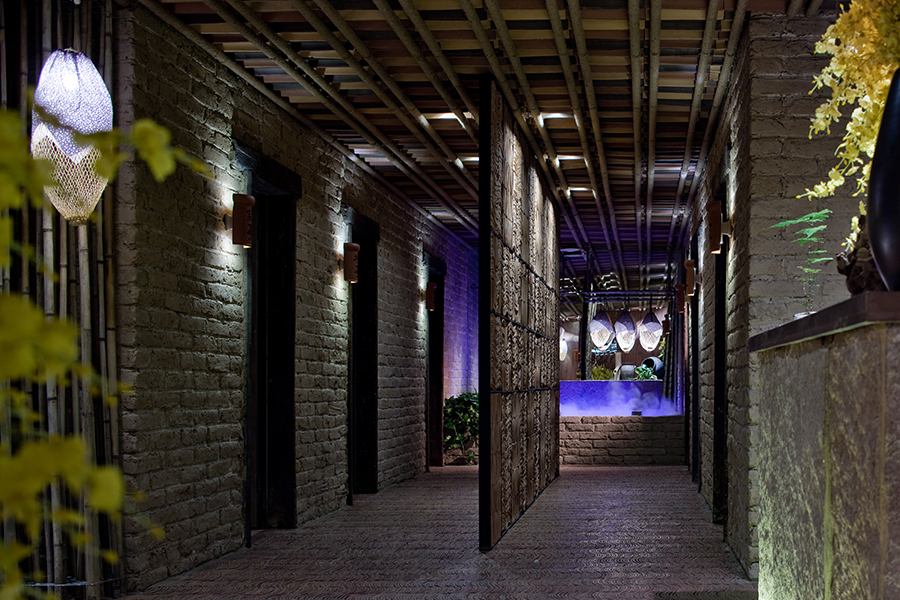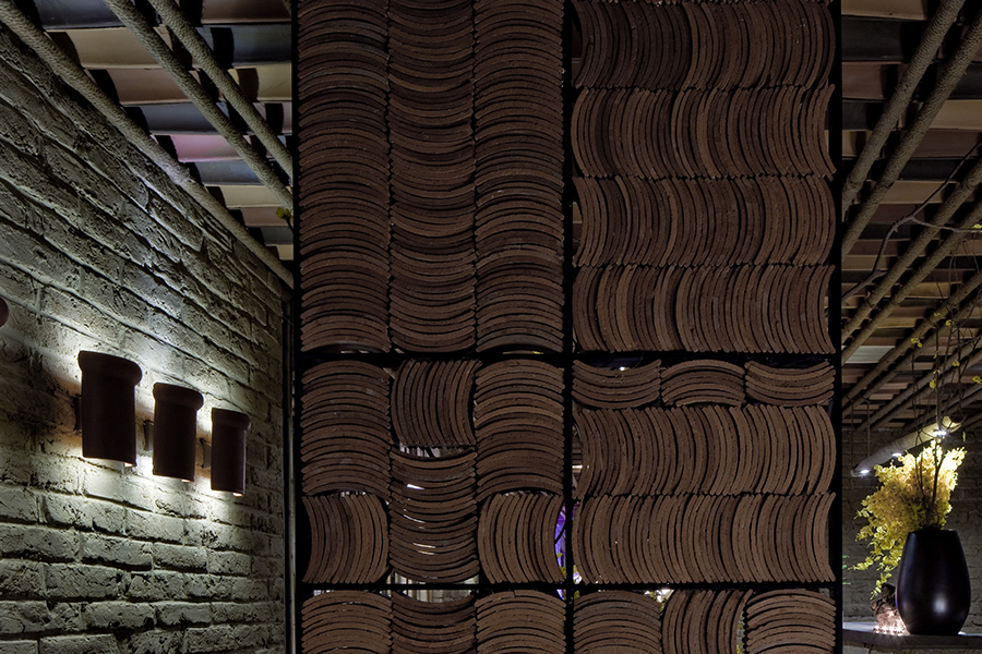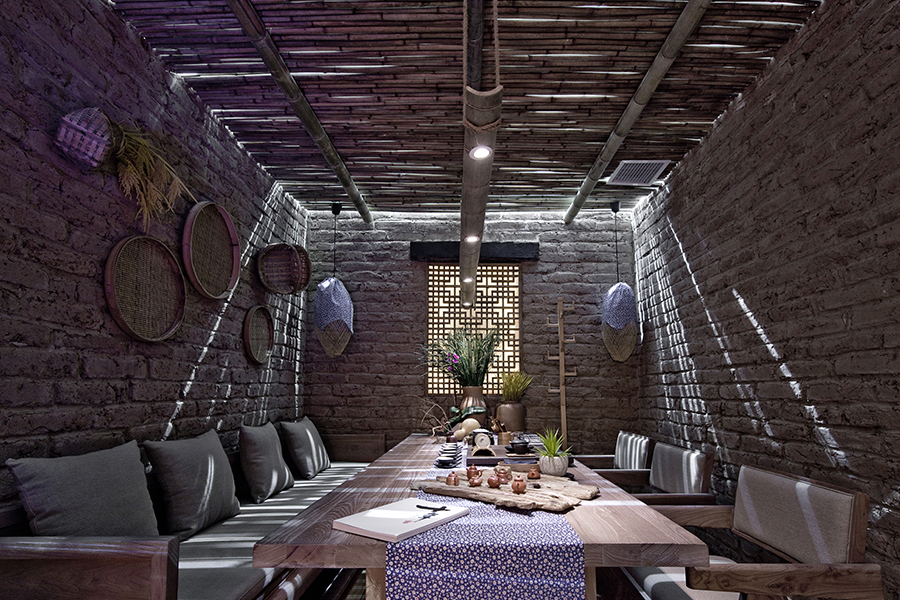 - 主要材料:土磚,竹子,紅瓦片,做舊實木板,木拼條,竹編燈