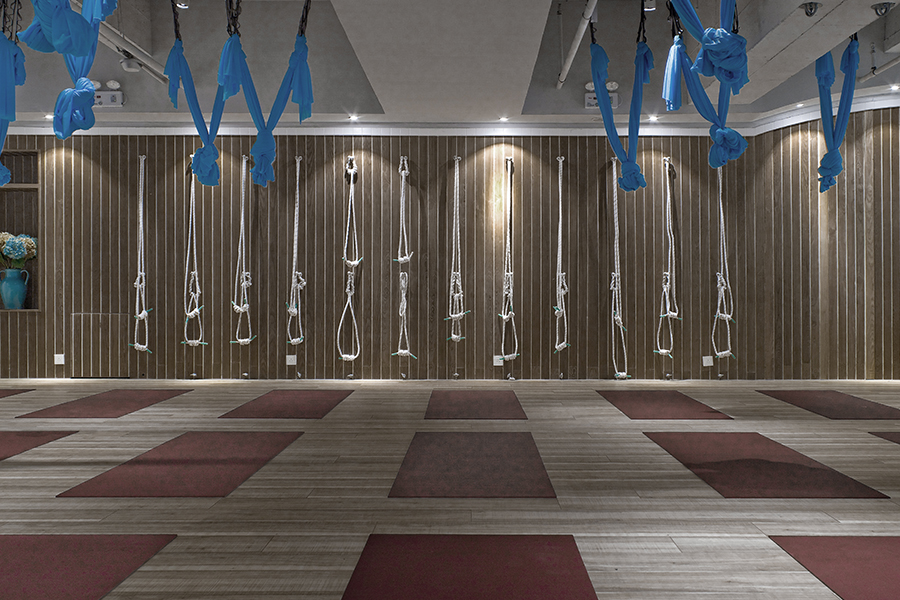 大的瑜伽練習區就在這隔斷的后面,同樣用了白色的鐵片做天花,也是小小的裝飾竹子從天花垂下,燈光透過白色鐵片,星星點點撒在這個安靜的空間,赤腳走在溫暖的木地板上,在蒲團上坐下,閉上眼睛,思維仿佛暫時停止,心中什么也不想,只有輕輕的風吹過窗戶,吹起麻灰色的窗簾,吹到臉上。暫時忘卻了一切。