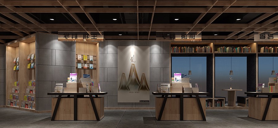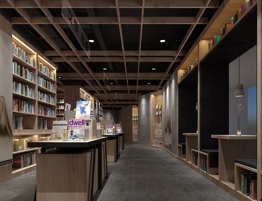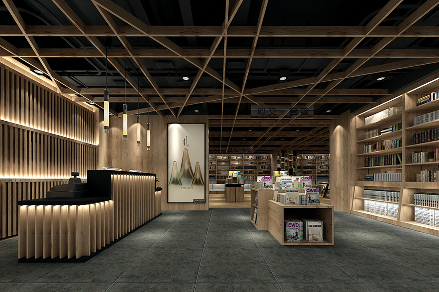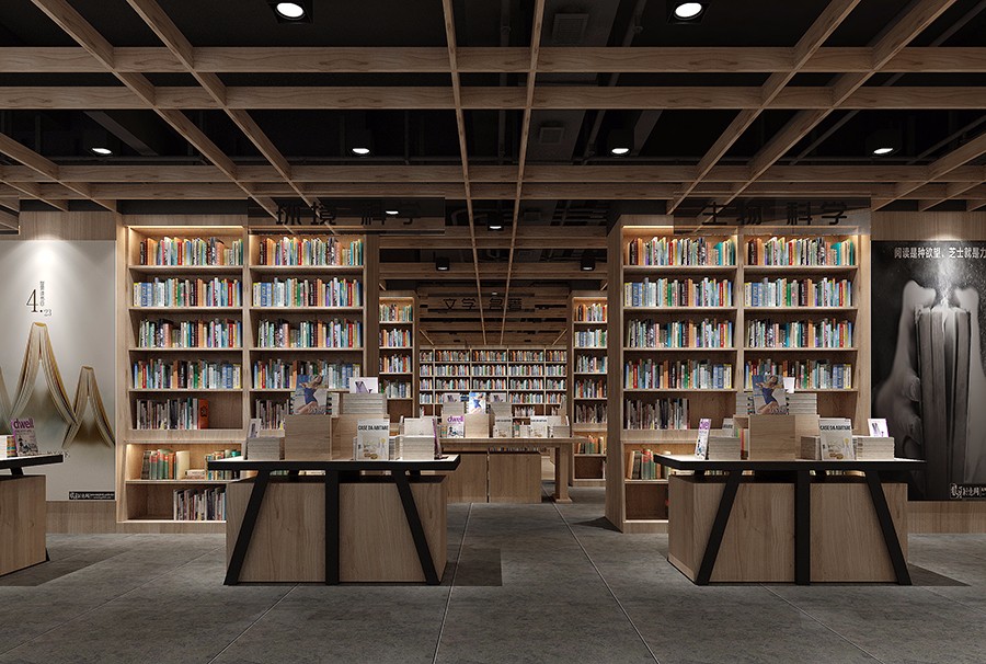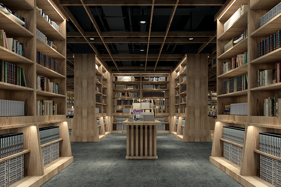 書店運用大量木制書架打造出高低不同、錯落有致的空間感。