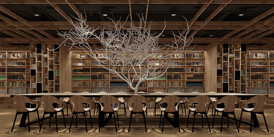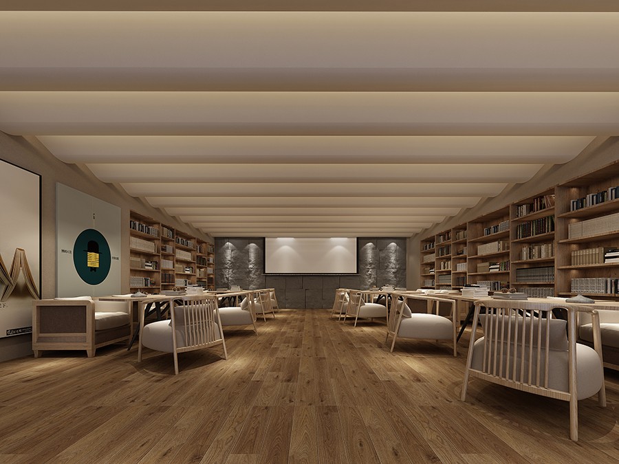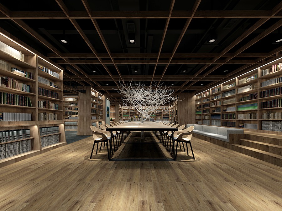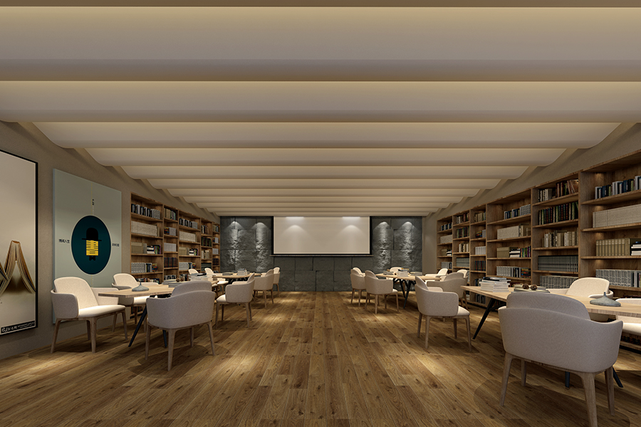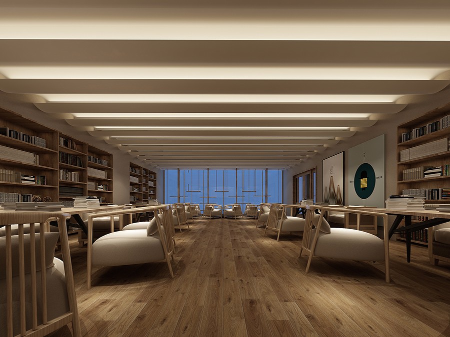 多尺寸的書架圍合空間,休閑型的沙發、書桌,搭配柔和的燈光,在這里,可以閱讀,可以休憩,也可以低聲聊上幾句。