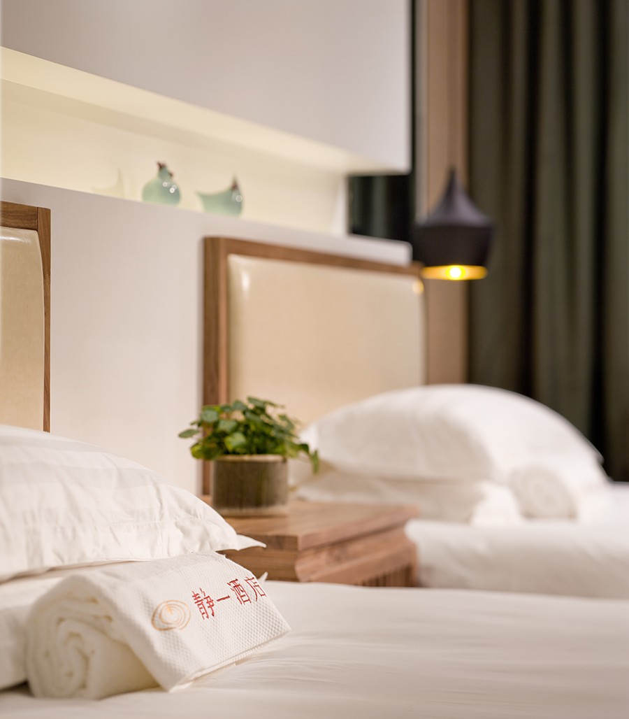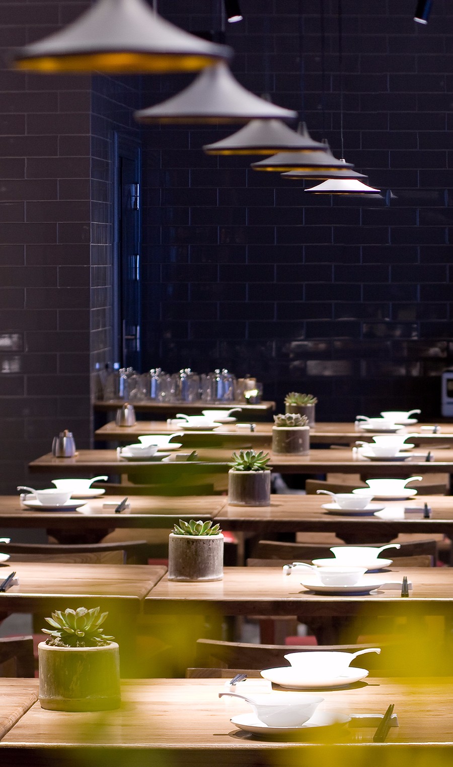 整個(gè)空間古樸、素雅,磚瓦等原生態(tài)材質(zhì)帶來樸實(shí)簡練之美,方管、鏡等工業(yè)風(fēng)元素,為空間注入現(xiàn)代氣息。從酒店客房到餐廳,每一處設(shè)計(jì),每一處線條和燈光都匠心獨(dú)具。置身其中,仿佛能感受到恬淡自然的生活哲學(xué)在安靜生長,并外化成一種禪境、一份簡約中透著雅致,不動(dòng)聲色又讓人流連忘返的靜態(tài)之美。