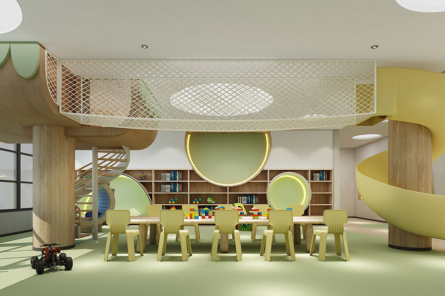 星空?qǐng)A月吊頂造型,薄荷綠收納柜和座椅,清新柔和的色彩,為孩子們營(yíng)造溫馨舒適的學(xué)習(xí)氛圍。