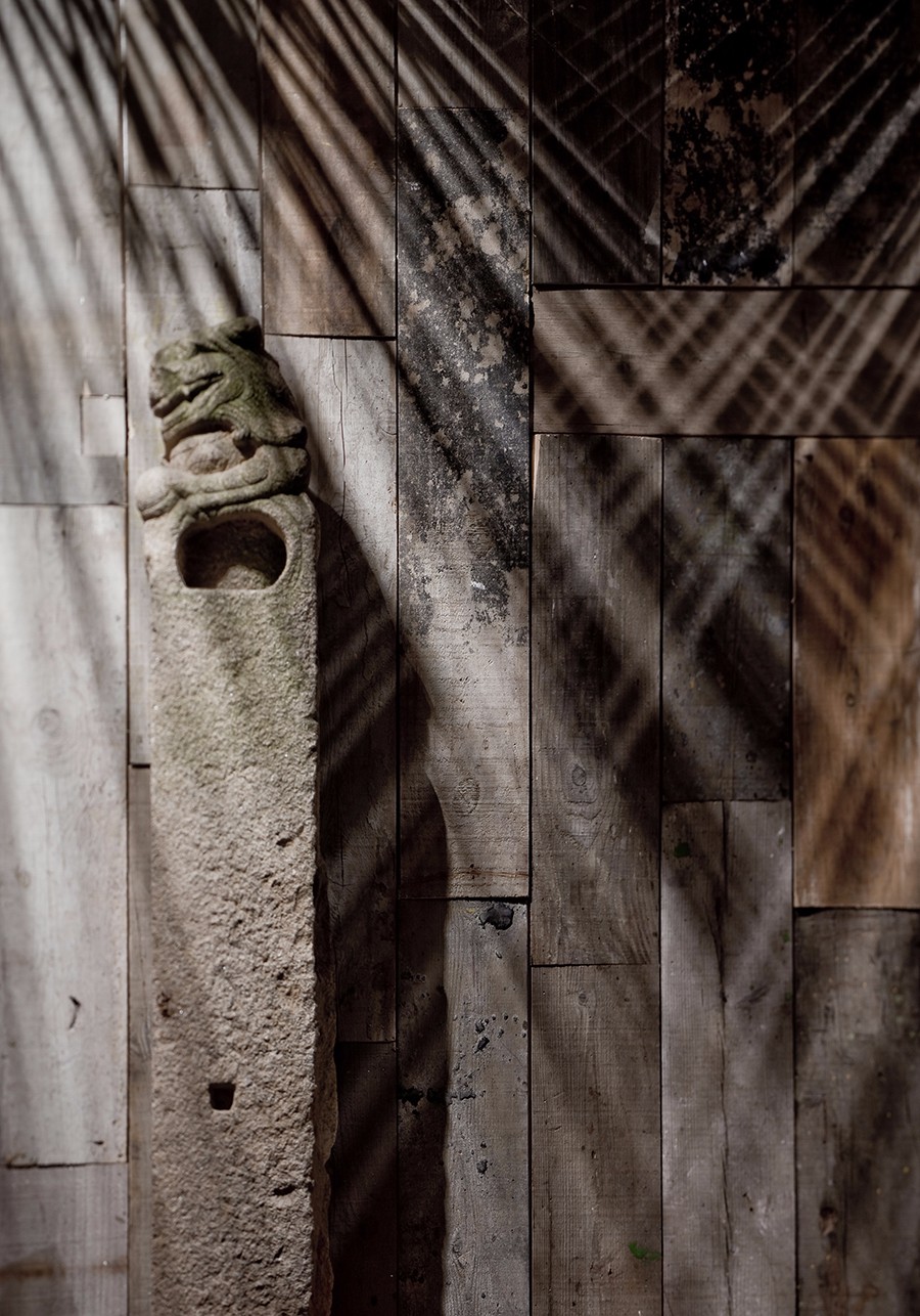 主要材料:黑色荔枝面大理石、木拼條、斧刀石、方管
