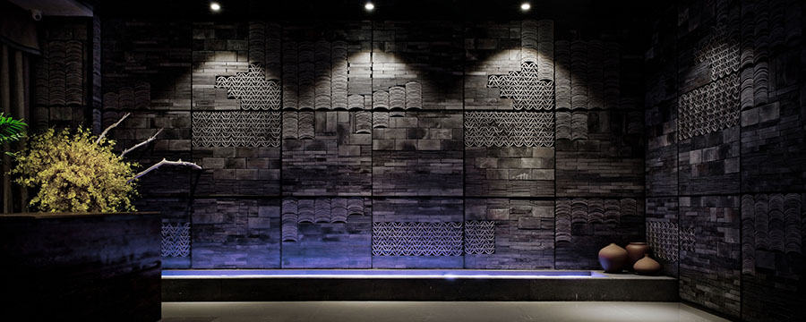 整潔有序的排列將自然而古樸的粗狂瓦片圍合