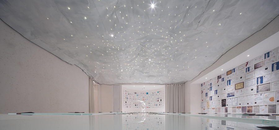 在其中一個會議室里,一面墻上醒目地掛著德國IF國際設計大獎、法國雙面神獎、紅點中國好設計空間類唯一金獎、意大利“A’Design Award& Competition”金獎,美國IDA設計獎金獎、美國IIDA全球卓越設計大獎、中美國際文化交流展暨國際創新設計獎金獎、IDPA中日國際先鋒設計大獎辦公空間類金獎,“SIDS新加坡室內設計大獎”,第25屆亞太區室內設計大獎(APIDA)金獎,“臺灣六藝獎”金獎,“金外灘”獎,APDC亞太室內設計獎金獎,IAI全球設計獎,現代裝飾國際傳媒獎等各類獎項證書。