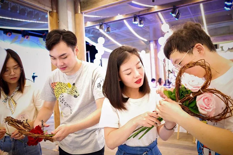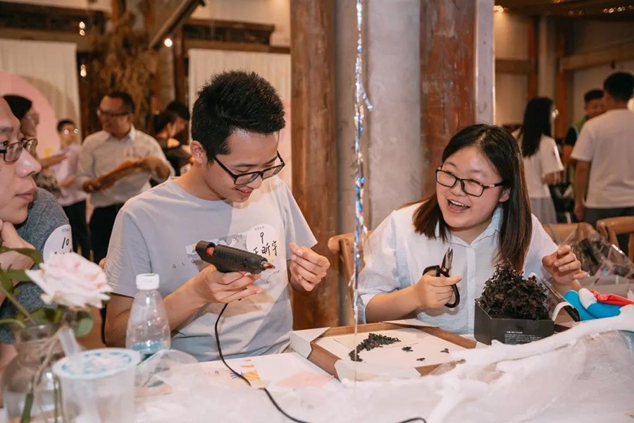 活動共分為5個環節,包含了當下年輕人喜愛的各類元素,分別為“青聽”“青訴”“青舞”“青旅”和“青春”。 男女青年兩兩組隊,通過交流對話、才藝展示、游戲互動等環節,展示了花橋多元化、包容性的文化特點。活動結束后,青年們還互相交換了禮物,結下了友誼,并共同歡唱了《龍的傳人》。